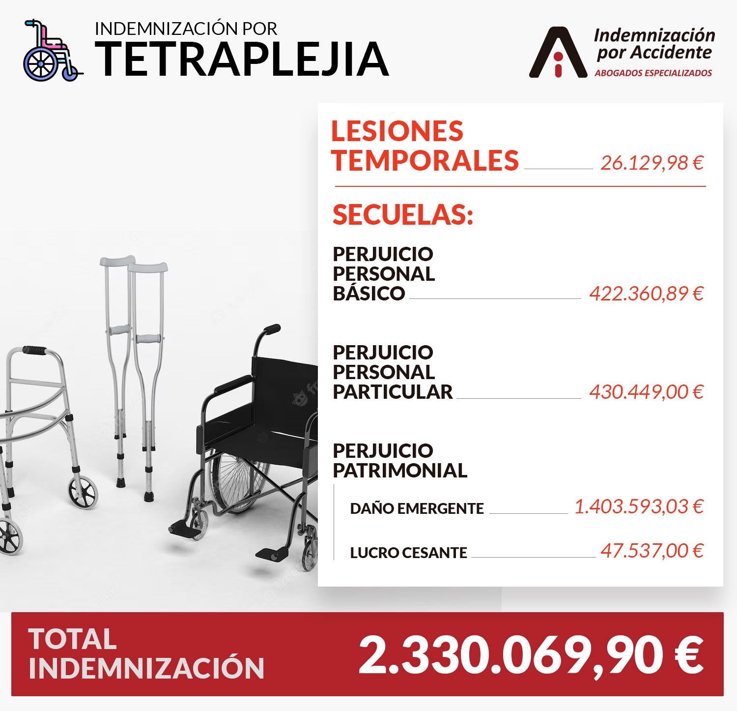 Este cálculo es el de un cliente de Indemnización por Accidente que sufrió una tetraplejia por accidente de moto y este sería a grandes rasgos resumido el cálculo de la indemnización por tetraplejia